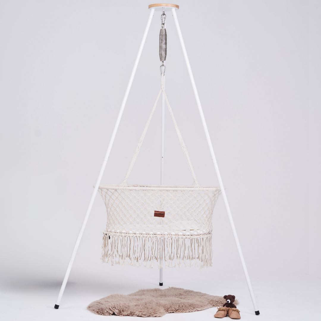 Umweltfreundliche Makramee-Federwiege mit Standfuß