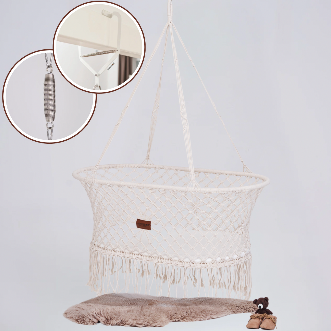 Umweltfreundliche Makramee-Federwiege mit Türklammer