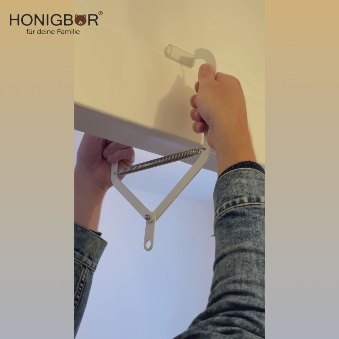 - Türrahmenklammer: Bohrfrei & platzsparend – Bitte beachte die jeweilige max. Türrahmen & Zargenhöhe. Unsere Honigbär Türklammer (bis 28cm Rahmenbreite & 11,5cm Zargenhöhe!