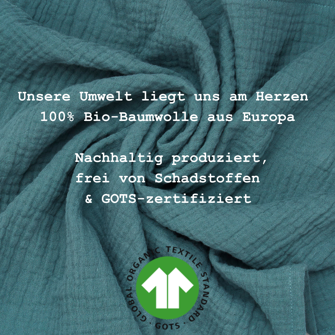 BESTE QUALITÄT: Unsere Musselin Stoffe in Bio Qualität sind besonders zart für die Haut Eurer Kleinen. Bio Musselin ist nicht nur ein Trendstoff in den heutigen Kinderzimmern, ihre gekreppte Optik macht unsere Bezüge zu echten Highlights. Musselin wird gerne auch als Double Gauze bezeichnet und ist ein luftig, leichtes Gewebe. Für den Stoff werden zwei Lagen eines lockeren Gewebes übereinander gelegt und punktuell miteinander verbunden. Dadurch behält Musselin seine wunderbar zarten Eigenschaften, ist aber trotzdem blickdicht & atmungsaktiv. Der fließende Stoff ist außerdem feinfädig und ganz besonders saugfähig. 🡇Weiterlesen
